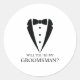 Black Tuxedo Suit Personalised Groomsman Proposal Classic Round Sticker