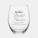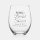 A classic and timeless wine glass that can complement various bridal shower themes. It is also suitable for brides-to-be who prefer a text based design without background elements for readability. The black texts contrasting on the transparent background also improves readability. The texts are center aligned and the fonts used are calligraphy, script and sans serif. Calligraphy and script fonts are used to enhance the design while the sans serif font is used to enhance readability. Customize it by typing the bride-to-be’s name, date and location. You can also change the contents or wordings in the design tool including the font style and font color. Please check the appearance of the front and back sides after typing texts. If the appearance is pleasing to you, you can place your order now. If you need to resize or reposition the texts, please adjust in the design tool. Wine glass for serving beverages with a touch of personalization for your guests. Warm wishes to the bride-to-be.