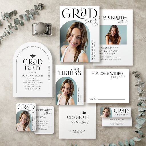 Modern typography in black and white, elegant and fun, great personalised advice & wishes cards for graduation party.