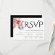 Black typography, rhododendron branch with flowers RSVP card