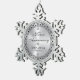 Happy 25th wedding anniversary Christmas ornament. Metallic silver texture looks background with customisable text in black. White diamond hears accents.