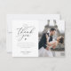 A simple black typography wedding thank you photo card template with a personalised thank you message to your guests.