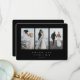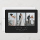 Black Ultra Minimal Triple Photo Wedding Flat Thank You Card