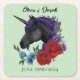 Black Unicorn Purple Red Sage Flowers Square Paper Coaster