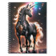 Enchanting notebook with a black unicorn and your name personalised on the cover. The unicorn has a glowing golden mane, and is highlighted with golden magic.