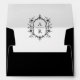 Elegant black and white vintage floral crest monogram wedding envelope. This envelope offers a sophisticated and memorable presentation for your wedding invitations. The envelope's exterior is of black colour. The back flap features space for a neatly printed return address. When opened, guests will be greeted by a beautifully designed interior showcasing an elegant floral crest, also rendered in black, providing a subtle yet luxurious hint of what awaits within. This envelope elevates the anticipation and sets a refined tone for your special day through its thoughtful colour palette and classic design.