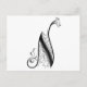 Black Vintage Monogram N Script Floral Postcard