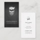 Black Vintage Retro Barber Shop Skull Business Card. Chalkboard background.