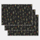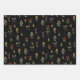 Black Vintage Spring Wildflower Pattern Wrapping Paper Sheet