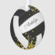 This cute volleyball ornament features the realistic image of a volleyball that has black & white panels and a sprinkling of tiny faux glitter gold stars, upon which you can customise the player's name on the front and commemorative year on the back - by katz_d_zynes