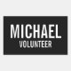 Black Volunteer Badge with Custom Name Rectangular Sticker
