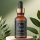 This waterproof dropper bottle product label features a black background with white text. This label measures 2.6 inches by 1.5 inches (66 mm by 38 mm) and is a great choice when you are looking to package essential oils, fragrance oils, beard oils, face serums, hair serums, and products requiring a durable label.
