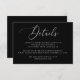 This elegant wedding details enclosure card features a black background with delicate calligraphy style script heading and classic serif body text. Perfect for sharing guest information like accommodation blocks, wedding websites, or special event notes. Its minimalist design adds a touch of sophistication and pairs seamlessly with formal, modern, or black-tie wedding suites.