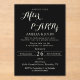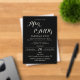 A sophisticated black wedding after-party invitation featuring elegant white typography and a modern minimalist layout. The design highlights a stylish handwritten “After Party” script paired with classic serif lettering for a refined, upscale look. Perfect for couples hosting a private ceremony followed by a celebration, this invitation clearly displays the couple’s names, event details, date, time, location, and RSVP information. A timeless and classy design ideal for weddings, receptions, and evening celebrations.