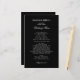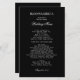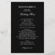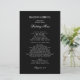 Simple black wedding menu. White printed text in modern fonts with easy to fill template sections. Names at top and wedding date at bottom. Add appetizers, courses, entrées, desert, etc. as you please to fill the middle of the paper. Bulk discounts apply. See the smaller 4x5 inch menu below.