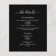 A modern, elegant wedding details/program/timeline. A black background. Personalise and add your names and wedding details. White coloured letters.