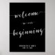 Calligraphy black wedding reception sign print Welcome to our beginning with customisable text - you can add bride's and groom's name and wedding date. Dimensions of the sign print (poster) are 20 inches by 28 inches.