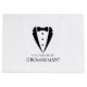 featuring a black tuxedo suit and bow tie illustration with groomsmen proposal message in a classic serif font.