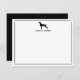 Personalised black weimaraner dog flat note card with a modern decorative border and solid colour back.