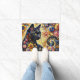 Black Whimsical Cat Abstract Floral Painting Art Doormat