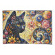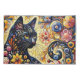 Black Whimsical Cat Abstract Floral Painting Art