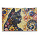 Black Whimsical Cat Abstract Floral Painting Art Pillowcase