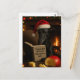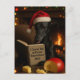 Humorous Christmas postcard featuring a black Whippet reading 'The Cheese Tax at Home Regulations 2025' whilst trying to resist the urge to eat the cheese that someone's left on the table right in front of its nose!