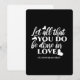 Share the timeless message of love and faith with this bold black and white design featuring the Bible verse from 1 Corinthians 16:14: 'Let All That You Do Be Done in Love.'Whether for personal wear, home decor, or a thoughtful gift, this scripture-based design inspires love and positivity in everything you do. It’s a perfect reminder of God’s call to act with love. #FaithAndLove #LoveInAction #1Corinthians1614 #ChristianScripture #Faith #Love #Bible