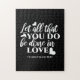 Share the timeless message of love and faith with this bold black and white design featuring the Bible verse from 1 Corinthians 16:14: 'Let All That You Do Be Done in Love.'Whether for personal wear, home decor, or a thoughtful gift, this scripture-based design inspires love and positivity in everything you do. It’s a perfect reminder of God’s call to act with love. #FaithAndLove #LoveInAction #1Corinthians1614 #ChristianScripture #Faith #Love #Bible