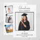 Modern minimalist simple graduation photo collage for her then and now in black and white with a cute hat graduate cap in each photo frame. Personalise with the graduate's photos and name and make a lovely graduation announcement card.