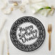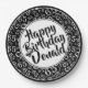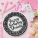 This over-the-hill design has a black and white random number pattern with a white milestone number 65 repeated in varied sizes and angles. There is a white circle in the centre for your text and black and white rings around the rim.
