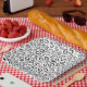 This cool numeric design is a black and white random number pattern with a black milestone number 65 repeated in varied sizes and angles over a white background.