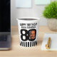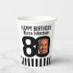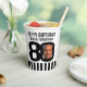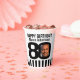 Personalise these mono 80th birthday party paper cups with your own birthday name and two photograph in the 0 of 80. Fun text and personalised photo design. Ideal for using at a Eightieth birthday party to show a photo of your birthday boy or girl now and one from the past. Other matching items are available. © Original graphic art and design by Sarah Trett for www.mylittleeden.com