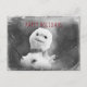 Funny Holiday postcard with Black/white version of cute snowman - altered edges with dark maroon customisable text