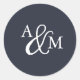 Black & White Ampersand Monogram Wedding Classic Round Sticker