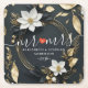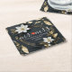 Black White and Gold Floral Wreath Wedding Mr Mrs Square Paper Coaster