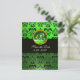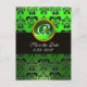 BLACK WHITE AND GREEN DAMASK EMERALD Monogram Announcement Postcard
