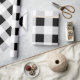 Minimalist black white and grey tartan pattern gift wrap rolls. Neutral colour decor.