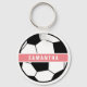 Black White and Pink Modern Sporty Soccer Monogram Key Ring