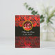 BLACK WHITE AND RED DAMASK RED RUBY Monogram Announcement Postcard