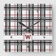 A classic and cozy plaid pattern gets a stylish twist by combining a classic combination of a white background with black and gray bars with a rich red accent. Customize the monogram on this clock to make it uniquely your own.