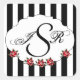 Black White and Red Rose Wedding Monogram Square Sticker