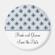 A pretty whimsical design of black and white flowers on a soft blue background. Customize with names and wedding date as desired.