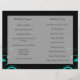 Black and White with Aqua Reverse Swirl Wedding Programme. Fold this 2-sided flyer in half for an elegant Wedding Program or Menu.