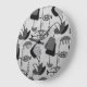 This Black and White Atomic Pattern Round Acrylic Wall Clock is black and white and retro all over. The design features a replica of a vintage 1950's fabric, as seen through the lens of a black and white television program. The modern art shapes include everything from the abstract to the fish! There are small fish swimming to the left, while blowing bubbles. There are larger black and white fish swimming to the right, while blowing grey bubbles. And there are dark grey jellyfish, who don't seem to be doing much of anything. This is the perfect design for anyone who loves fish, fabric, and items with a retro feel. This black and white design proves that you don't have to have color to be colorful. It's a kitschy blast from the past!