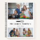 Modern family recipe book personalised with three photos and your family name beneath a cute balloon whisk in black against a white background.