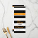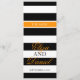Double-sided simple black and white stripe with touches of bright orange wedding reception dinner menu. Personalise with your own menu details.
