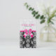 Black & White Baroque Damasks With Pink Bow Business Card