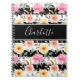 Black White Blush Yellow Pink Floral Script Name Notebook
