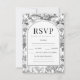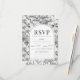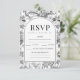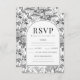 Delicate romantic black white chinoiserie porcelain boho arch floral pattern classical wedding response RSVP cards with bride and groom monogram on the back.